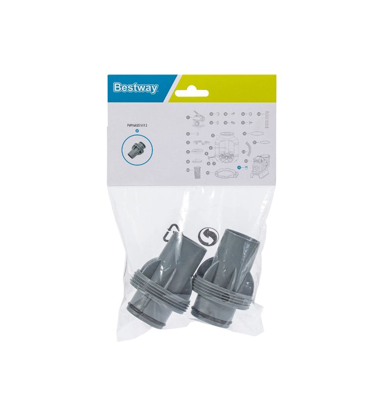 Ce jeu de 2 adaptateurs 32-38 mm permet d'adapter le diamètre de votre tuyau de filtration pour filtre Flowclear Bestway. Ces adaptateurs fonctionnent pour tous les tuyaux de diamètre 32 ou 38 mm.