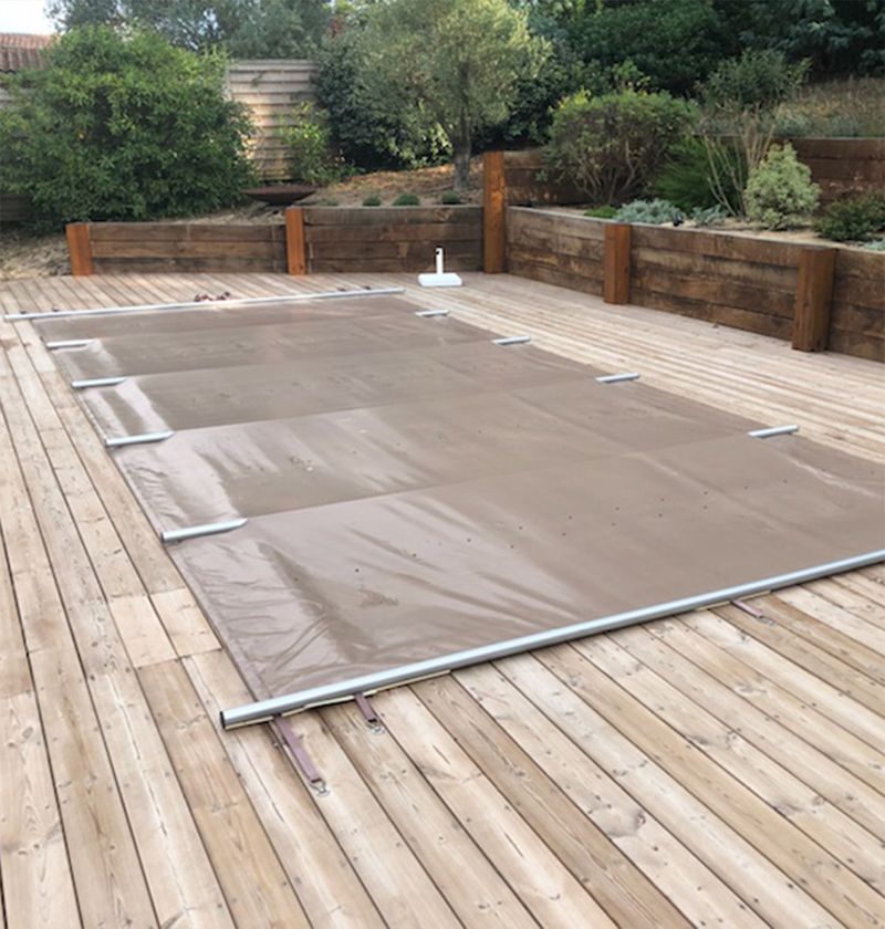 Une bâche à barres solidement fixée pour protéger votre bassin