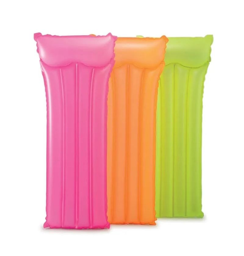 Ce matelas gonflable aux couleurs flashy est doté de deux chambres à air pour plus de sécurité et de solidité. Il est également composé d'un coussin gonflable intégré pour plus de confort lors de vos séances farniente. Facile à gonfler emmener votre matelas partout !
