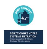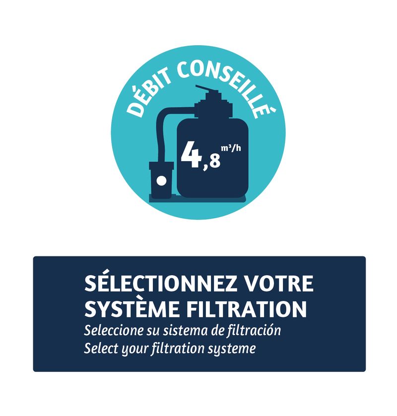 Cette piscine hors-sol O'BYA est vendue sans système de filtration ; vous avez donc la possibilité de réutiliser votre groupe de filtration ou de choisir librement un système adapté à vos besoins. Pour conserver une eau saine et propre, nous vous conseillons le groupe de filtration basse pression Yzaki Flow 4.8 m3/h.